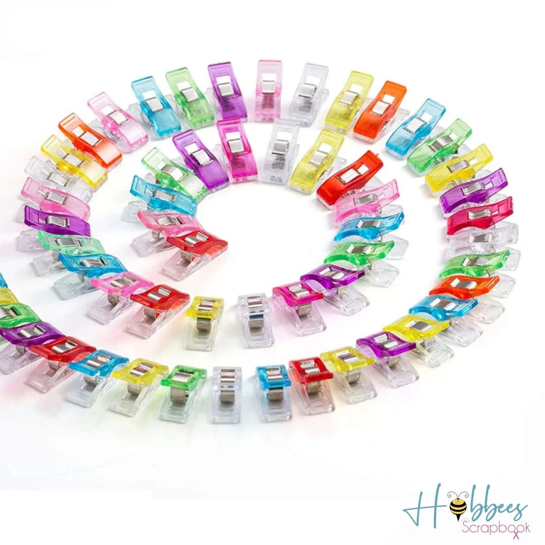 El clip se abre de par en par para sujetar capas de telas. La base del clip es plana para facilitar la alimentación del prensatelas.
