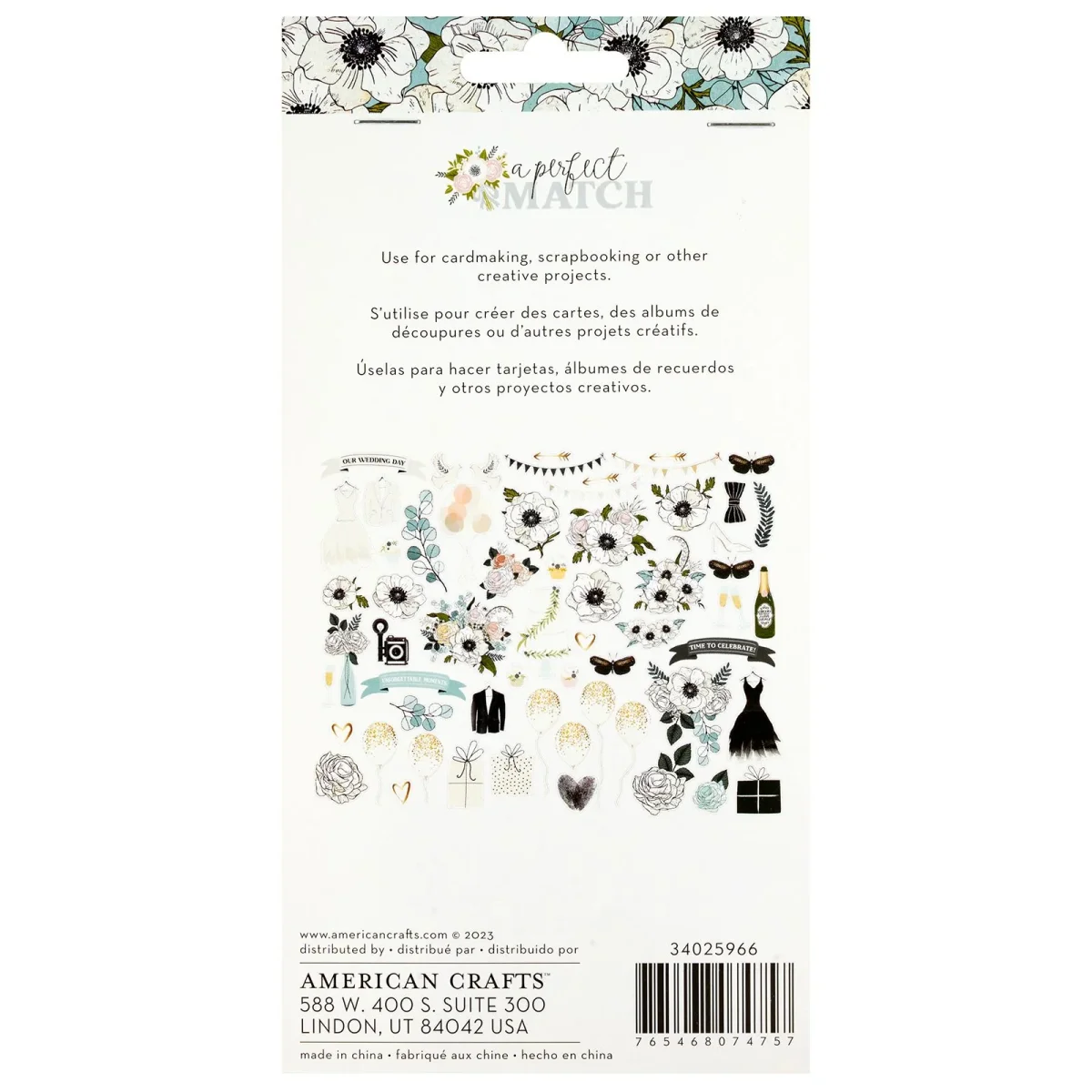 Con sus diseños intrincados y su artesanía de alta calidad, los íconos efímeros de la colección A Perfect Match de American Crafts son imprescindibles para cualquier entusiasta de la artesanía en papel. Diseñadas para coordinar perfectamente con el resto de la colección (se venden por separado), estas 61 piezas de íconos efímeros troquelados son perfectas para agregar un toque caprichoso a sus manualidades primaverales, nupciales o con temas de bodas. Desde delicadas flores hasta otras imágenes encantadoras, estos íconos realzarán instantáneamente tus tarjetas, páginas de álbumes de recortes, etiquetas y más.