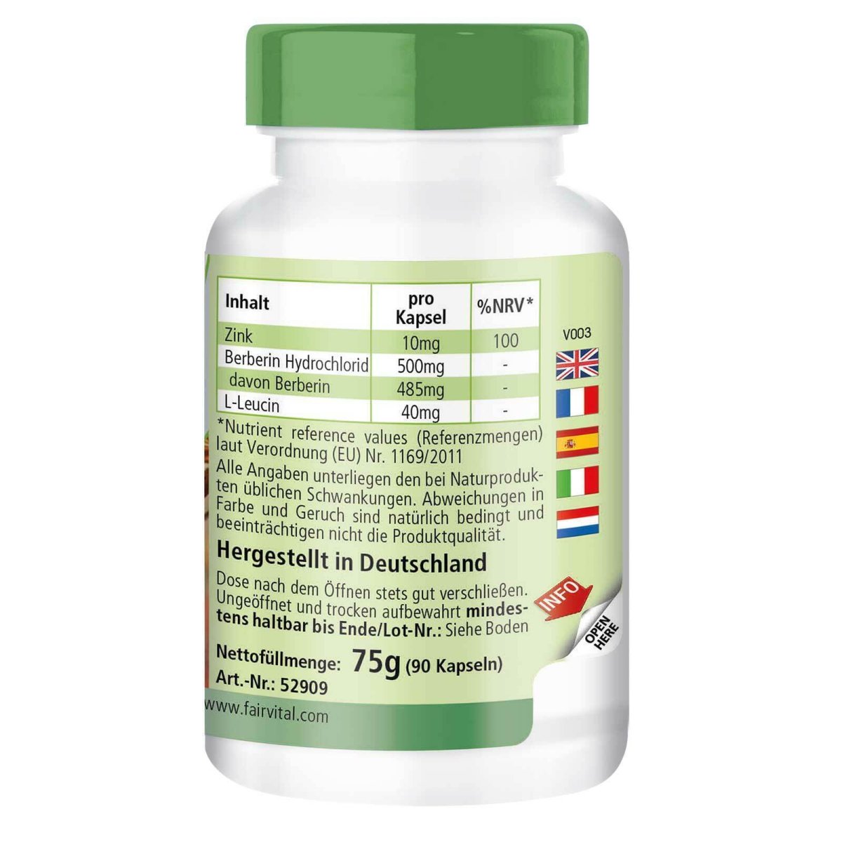 Berberina 500 mg con citrato de zinc – 90 cápsulas – nootrópico – VEGANO
