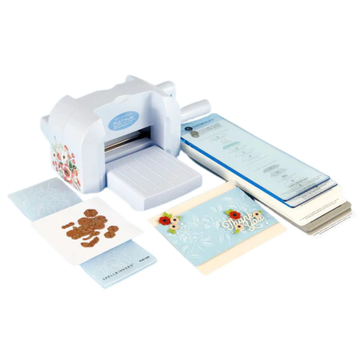 Sorpréndete y deléitate con esta hermosa máquina de color azul pálido con acabado perlado y hermoso estampado floral. Esta máquina única incluye un juego de troqueles exclusivo y una carpeta de relieve 3D de perfil delgado que no se puede encontrar en ningún otro lugar. Además, el sistema de placas universales de Blue Mist Scout incluye placas de corte azules translúcidas para combinar con la máquina.