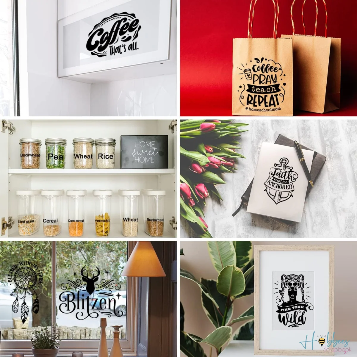 - Ideal para calcomanías de pared, gráficos de ventanas, espejos de automóviles, arte de señalización, cubiertas para computadoras portátiles, álbumes de recortes, tazas y vasos.