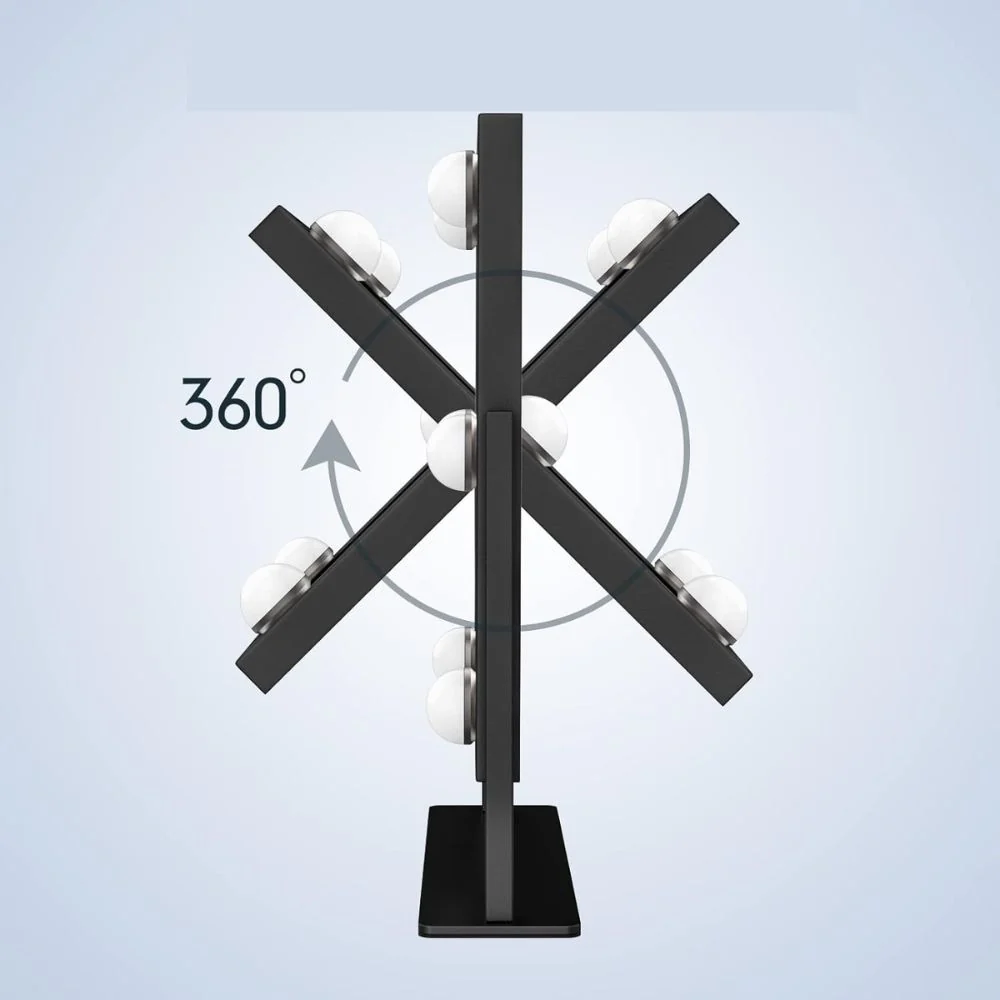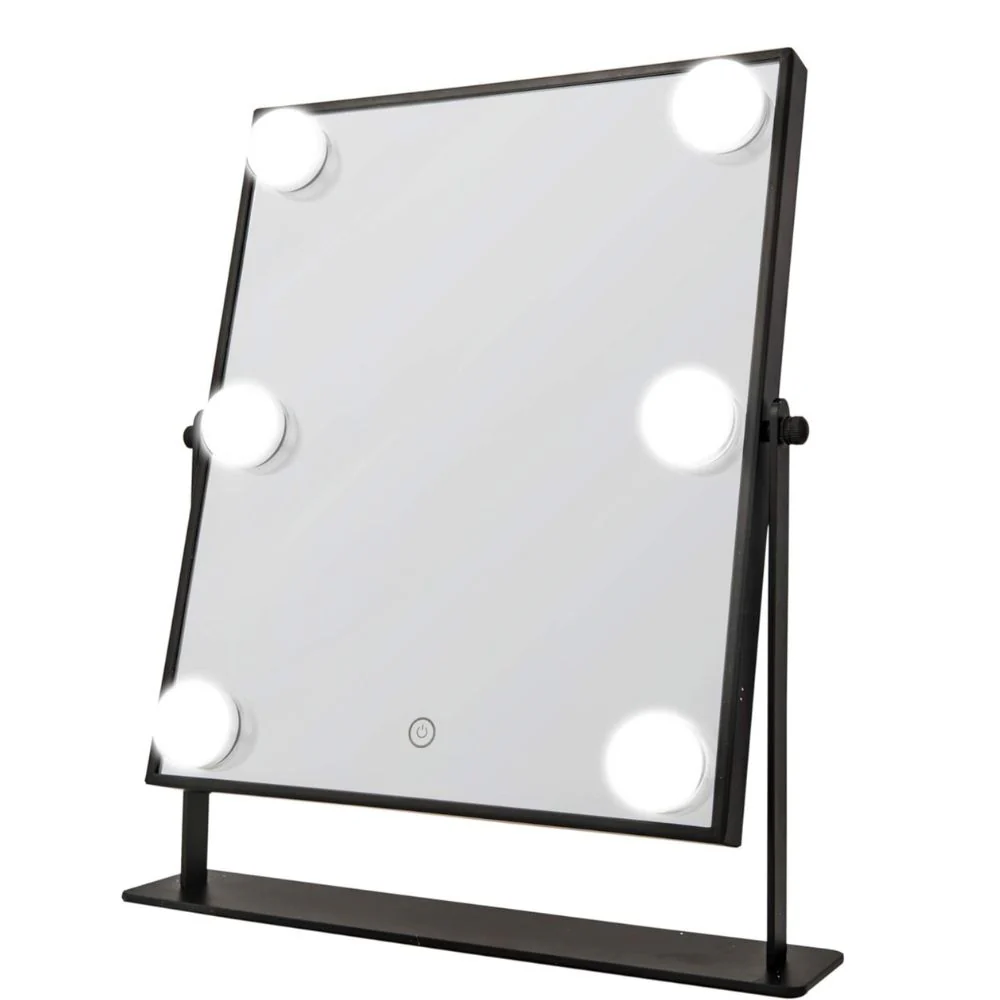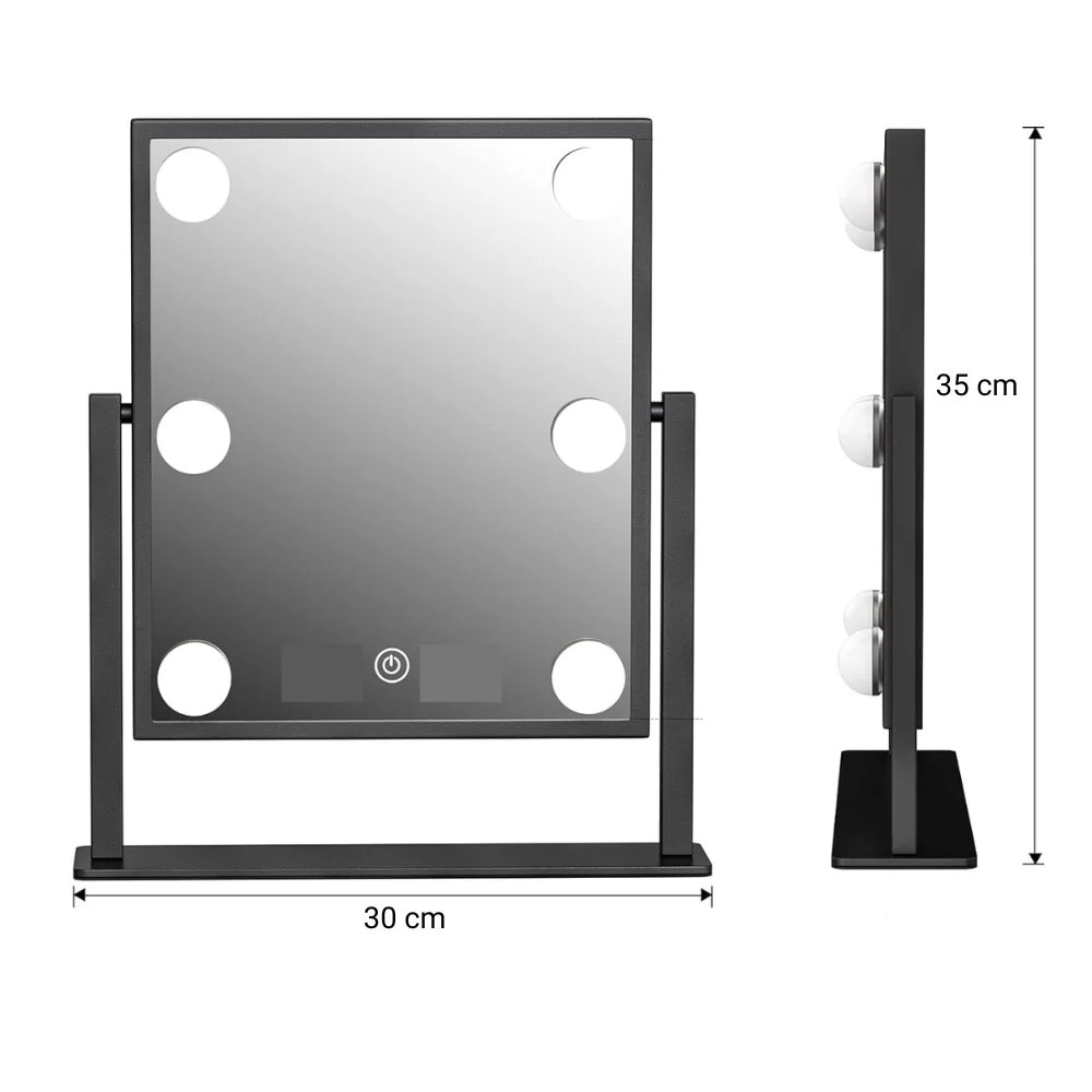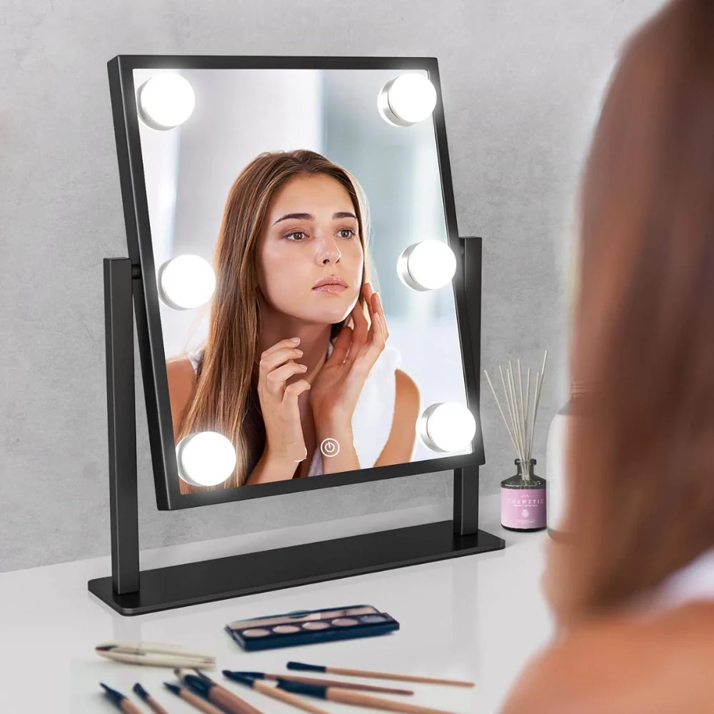Puedes girarlo 360 grados, tiene un sistema táctil para encendido. Su estilizado diseño en negro elevará tu espacio de belleza y ¡te sentirás como toda una estrella de cine!