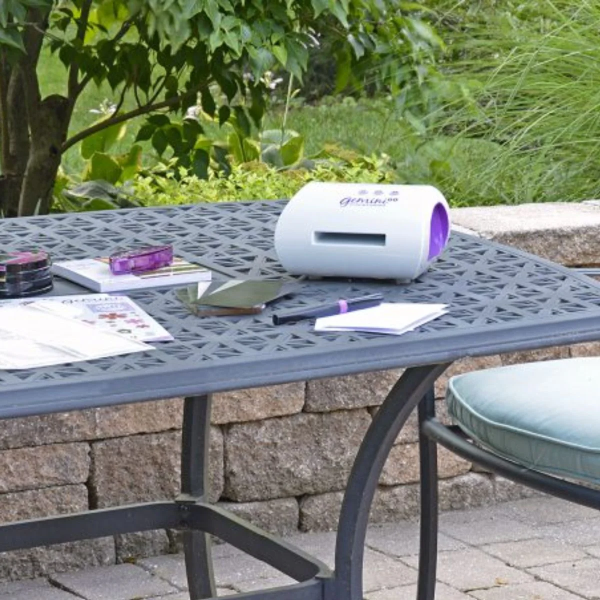 Gemini GO se puede enchufar a la red eléctrica para hacer manualidades en el escritorio de casa, pero también tiene una característica especial adicional: se puede alimentar con un paquete de baterías para hacer manualidades sobre la marcha, lo que significa que se puede llevar a clubes, de viaje o al jardín para sesiones de manualidades al aire libre en los días más cálidos. 7.62 cm x 15.24 cm. Voltaje: 12V.