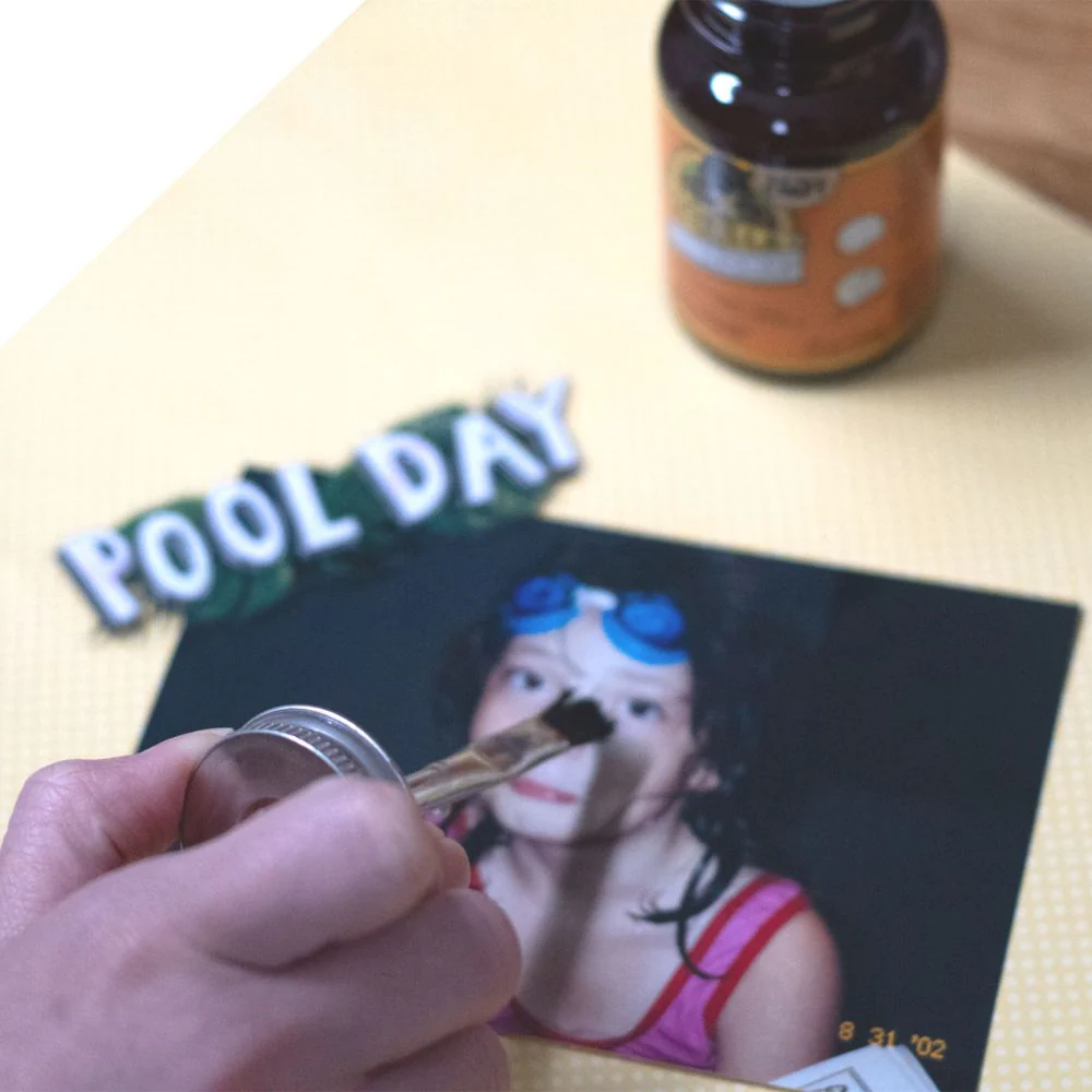 Tiene un cepillo integrado para una fácil aplicación. No amarillea Es seguro para usar con fotos. Ideal para papel, tela, cartón pluma, fotos y más.