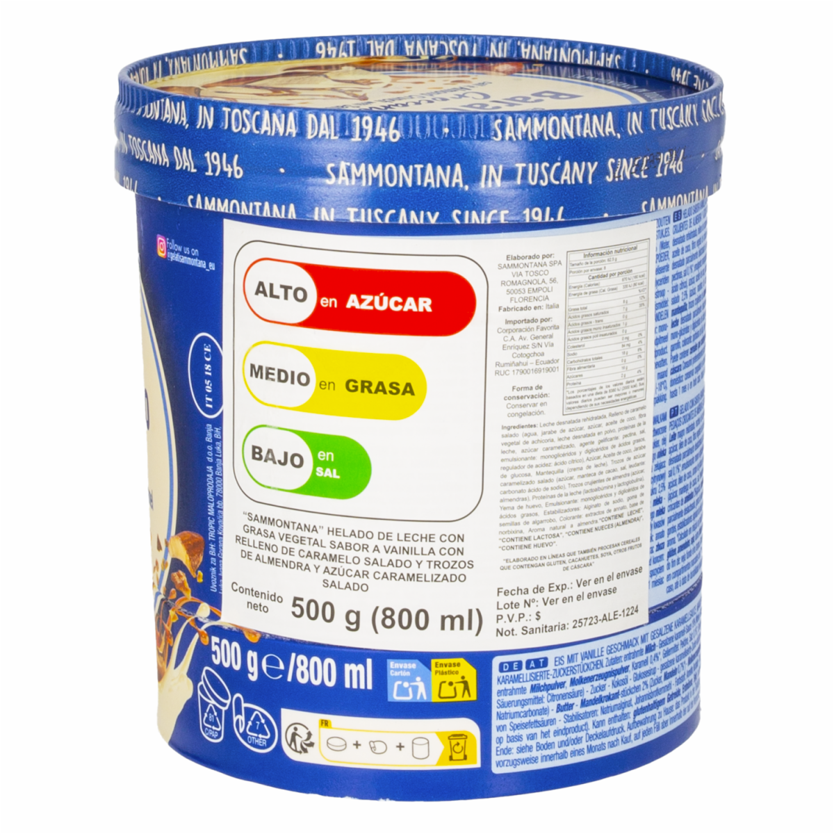 Saborea un helado de vainilla con un irresistible relleno de caramelo salado, acompañado de crujientes trozos de almendra y azúcar caramelizado salado. Una mezcla perfecta de cremosidad y crocancia que hará especial cada momento