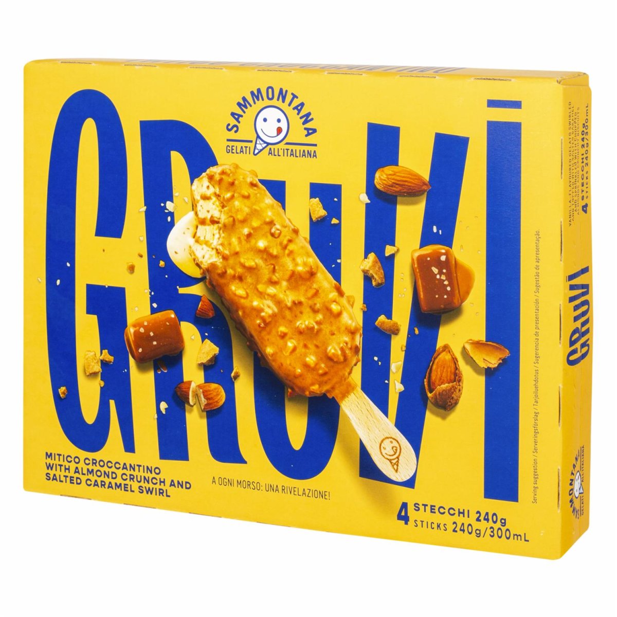 Déjate tentar por un helado de vainilla con crujientes trozos de azúcar caramelizado salado, un suave relleno de caramelo salado y la combinación perfecta de almendras y galleta. Un postre cremoso y crocante que equilibra dulzura y un toque salado en cada bocado