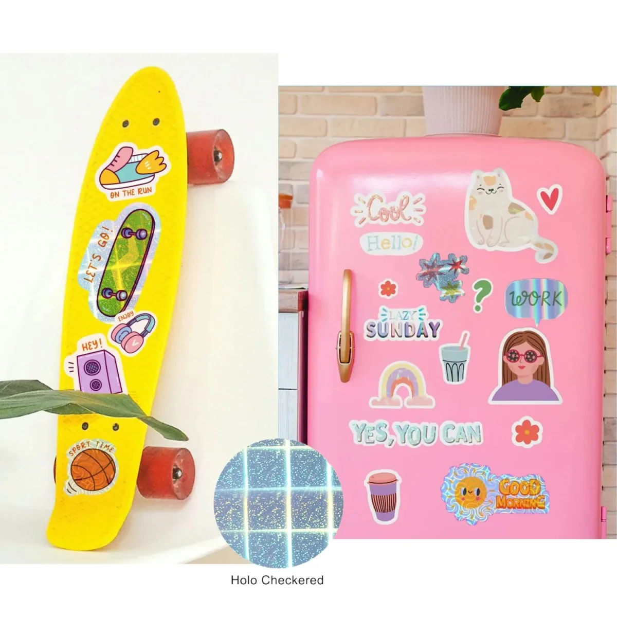 - 15 Hojas de Vinil adhesivo Imprimible Holográfico Cuadros que miden 8.5″ x 11″ pulgadas (21.59 x 27.94 cm) c/u
