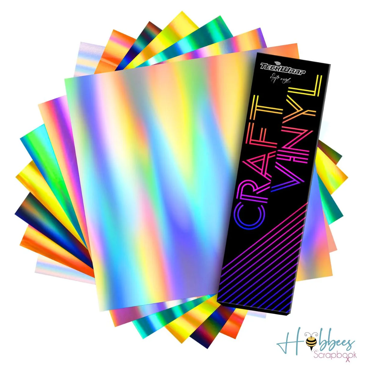- 7 Hojas de vinil adhesivo holográfico arcoiris que miden 12″ x 12″ pulgadas (30.5 x 30.5 cm) c/u