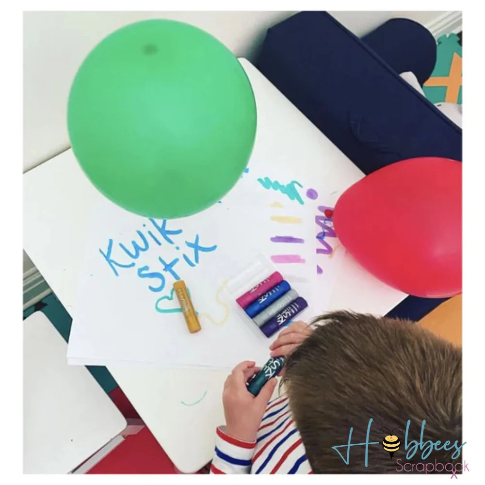 ¡Saca el lío de pintar! ¡Simplemente destapa, gira y pinta! Kwik Stix utiliza una fórmula de secado rápido que les permite secarse en 90 segundos. No se requieren vasos, batas, agua o cepillos. Kwik Stix viene en una variedad de colores vibrantes con una cobertura que no se desvanece ni se agrieta. ¡Funciona en papel, carteles, cartón, lienzo, madera y más! Kwik Stix debe estar tapado cuando no está en uso. Hecho de materiales no tóxicos. Cumple con la norma ASTM D 4236.