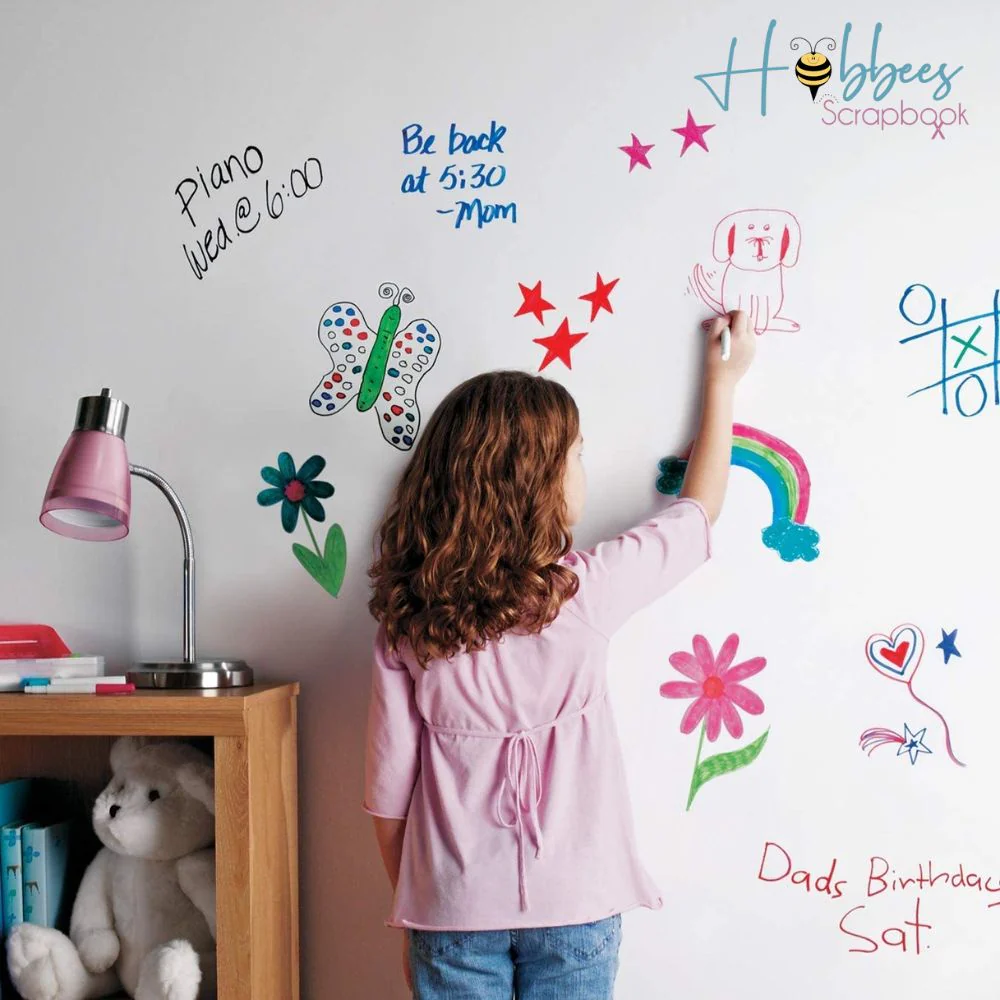 Una vez seco, simplemente use cualquier marcador de borrado en seco para dibujar o escribir mensajes y luego borrar. La aplicación es fácil y tiene un olor mínimo, por lo que es seguro para usar en interiores. Cubre un área de 2.13 x 2.13 m (7 pies x 7 pies).