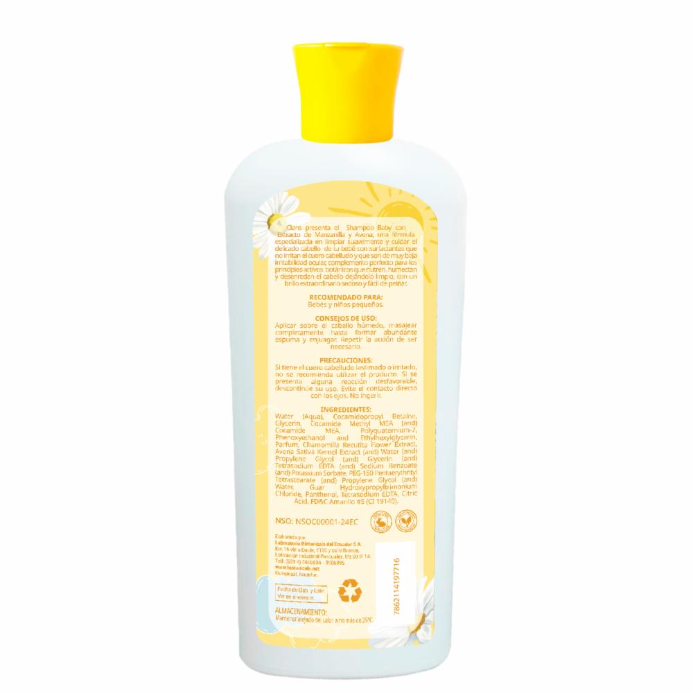 Clans presenta el Shampoo Baby con Extracto de Manzanilla y Avena, una fórmula especializada en limpiar suavemente y cuidar el delicado cabello de tu bebé con surfactantes que no irritan el cuero cabelludo y que son de muy baja irritabilidad ocular, complemento perfecto para los principios activos botánicos que nutren, humectan y desenredan el cabello dejándolo limpio, con un brillo extraordinario sedoso y fácil de peinar