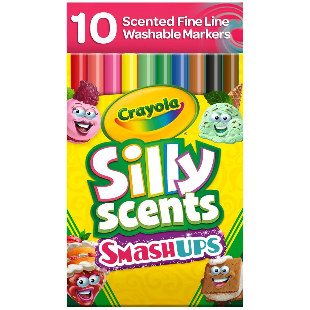 Los marcadores lavables aromatizados con punta de cincel Crayola Silly Scents cuentan con aromas atractivos que añaden una nueva dimensión a las obras de arte de los niños. ¡Cada herramienta de arte aromático convierte inmediatamente cualquier proyecto de colorear en una experiencia de garabatear y oler! Recomendado a partir de 3 años.