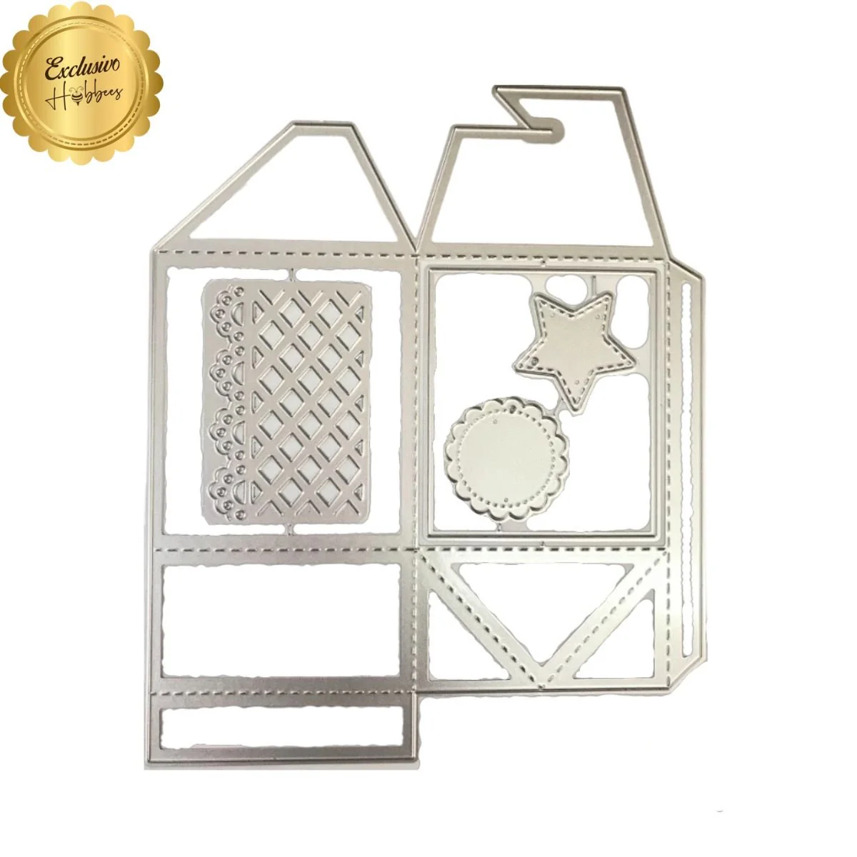 - 3 suajes (etiquetas): estrella: 3.3 x 3.3 cm, Circulo escalope: 3.3 cm diametro y rectángulo con patrones de rombos: 6.5 x 4.5 cm