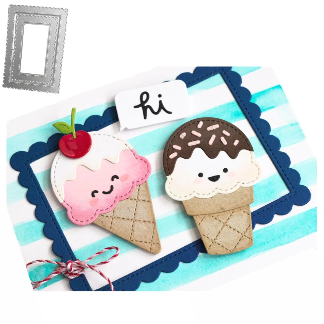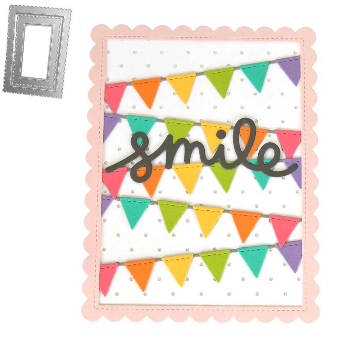 - 2 Suajes de Marco rectangular con onditas puntadas que miden marco grande 14.5 x 10 cms y Marco mediano 11.7 x 7 cms