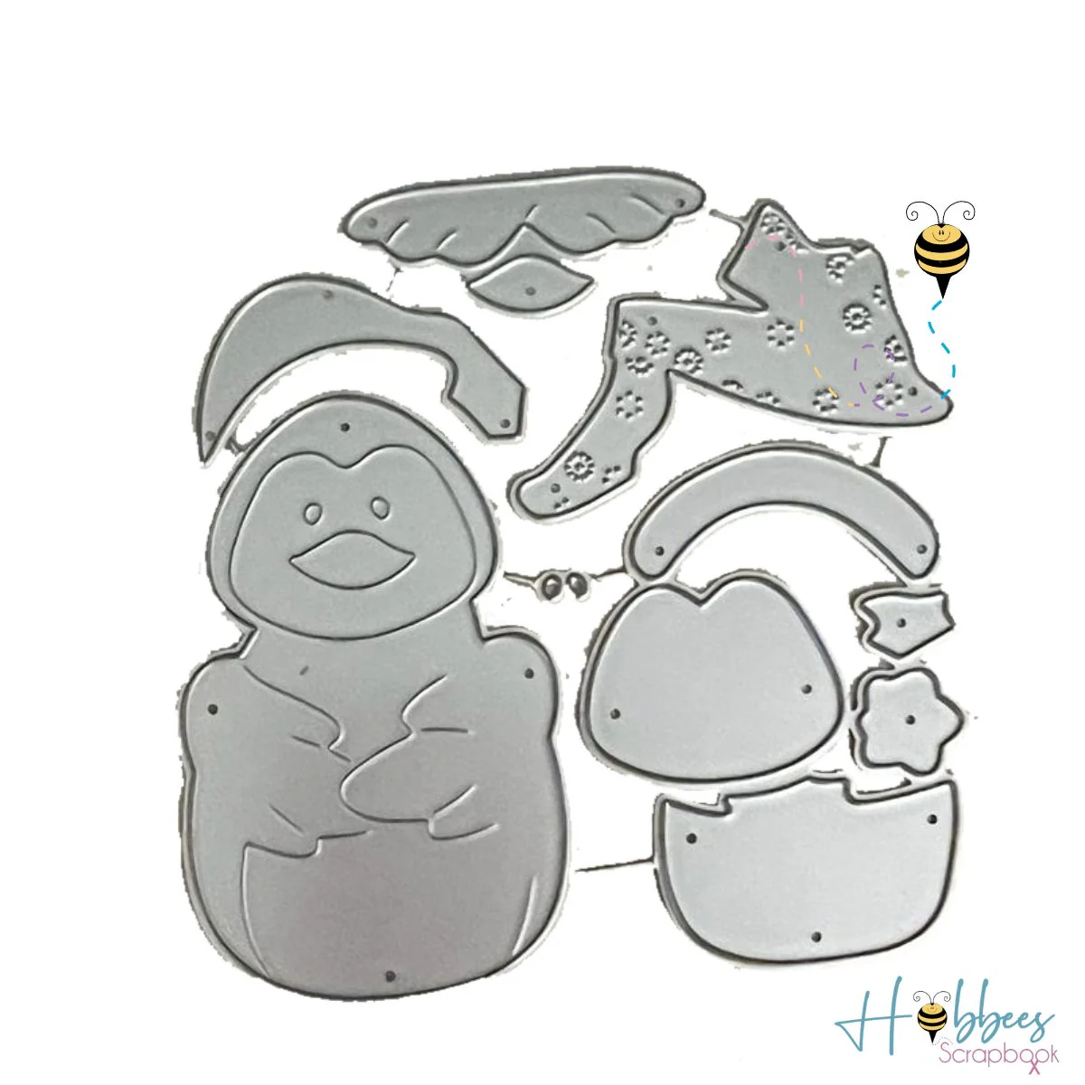 - 9 Suajes para armar un pingüino. El cuerpo del pinguino mide 7 x 4.5cm