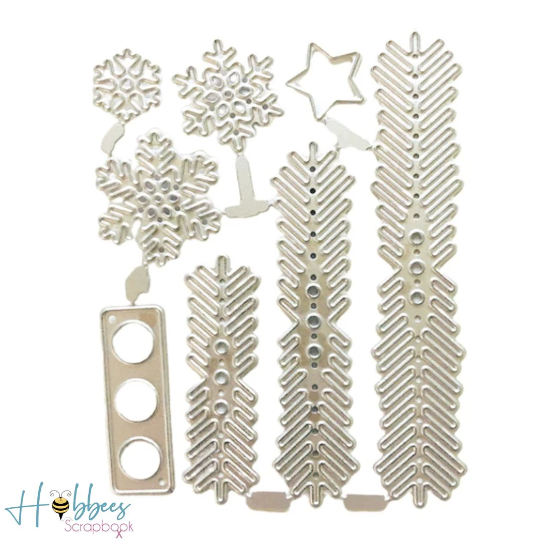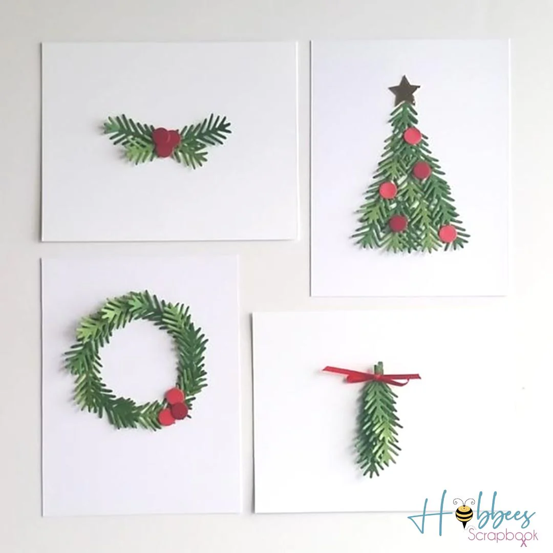 - 3 Suaje de Ramas de Pino que miden 1.6 x 5.4, 1.8 x 7.7, 2 x 10 cm.