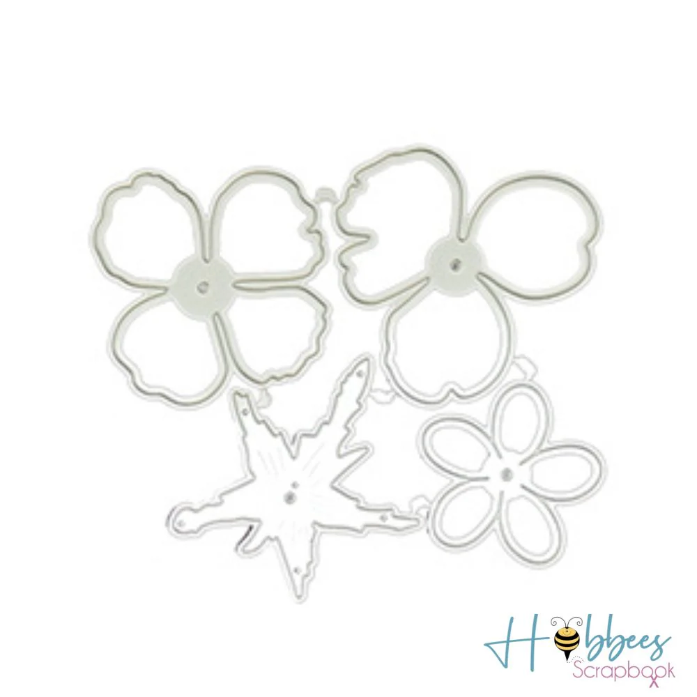 Las medidas de los suajes de flores son: 3.6 x 3.6, 5.1 x 5 y 5.2 x 5.2 cm. El centro mide 5 x 4.9 cm.
