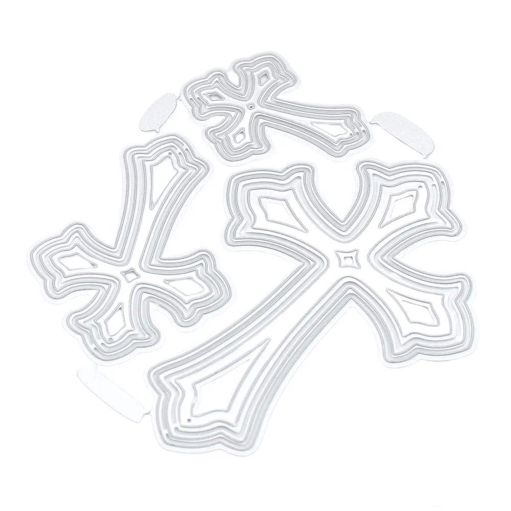 - 3 Suajes de cruces que miden 3.8 x 5, 5.2 x 6.9 y 7.5 x 10 cm.