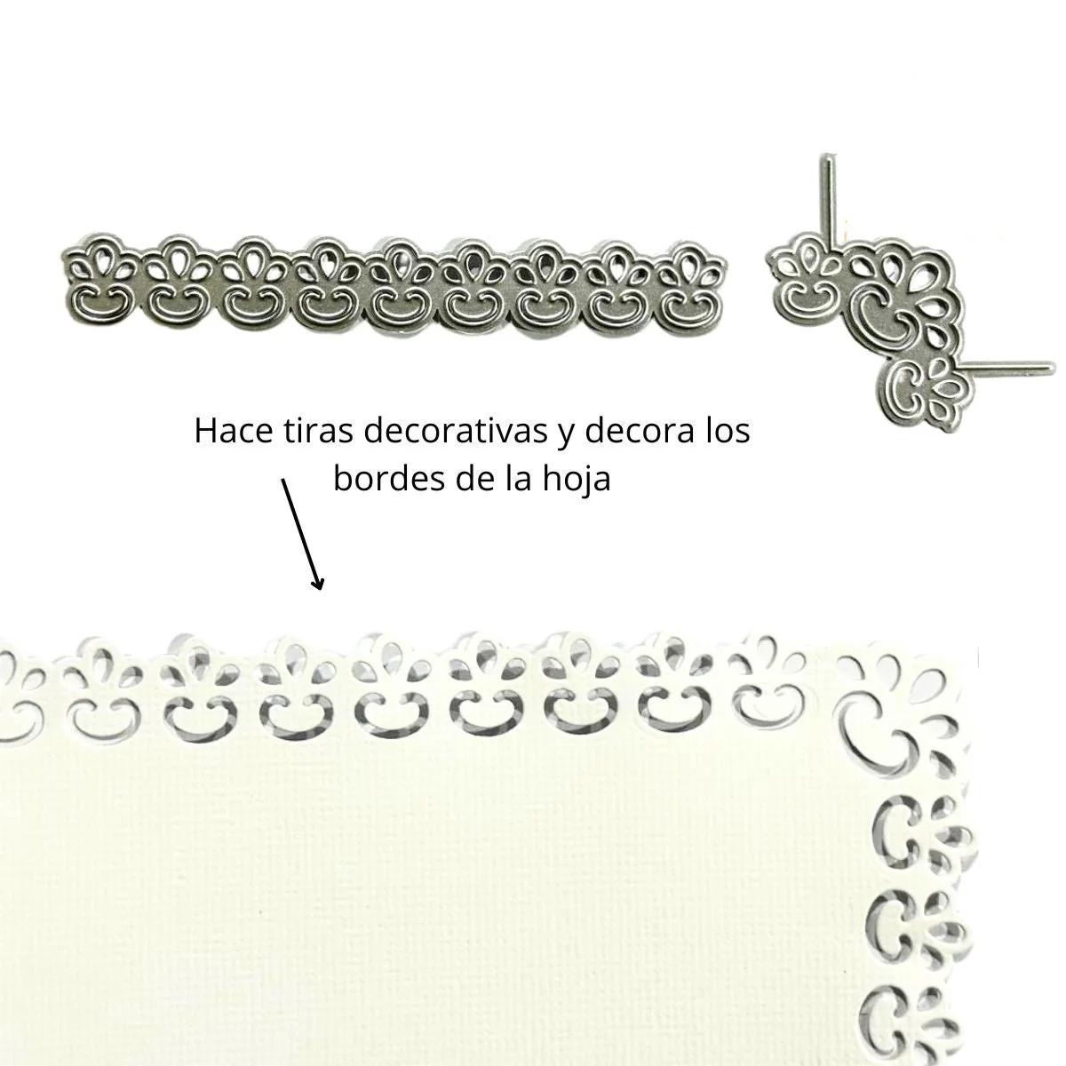 - 1 Suaje o troquel de orilla que mide 12 cm de ancho x 1.5cm de altura