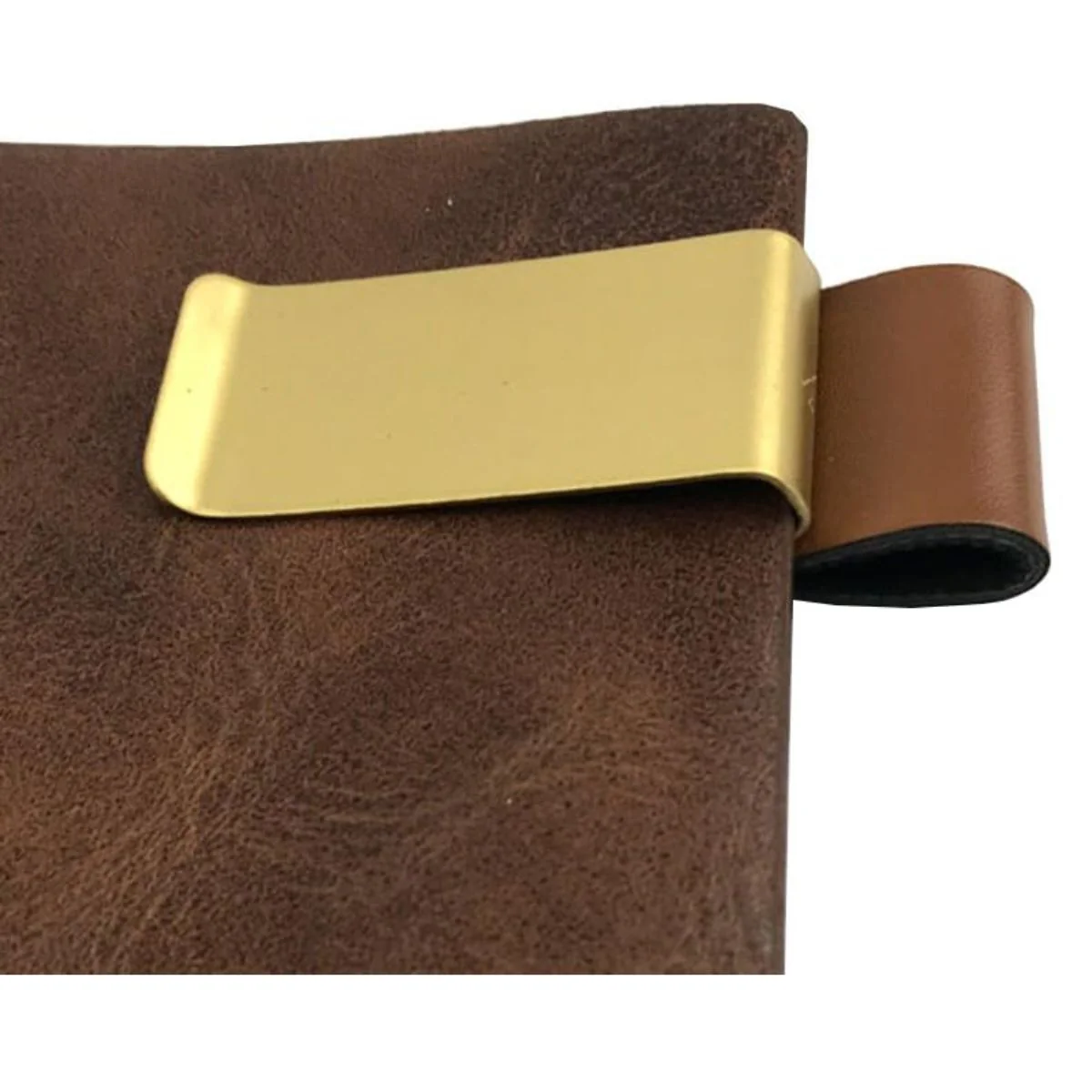 Fabricado en piel sintética con un soporte de latón, este soporte para bolígrafos quedará genial en tus libretas.