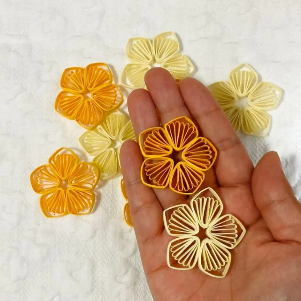 - 50 tiras de papel para filigrana de 5mm de ancho 40 cm de largo. Color Gualda