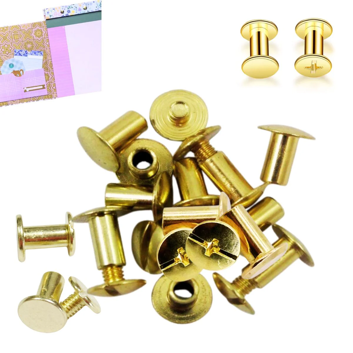 - 10 Tornillos Chicago dorados de 10mm de diámetro 15mm de altura