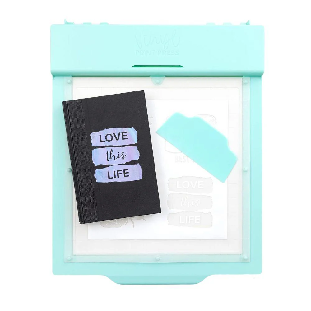 ¡Convierte fácilmente cualquier corte de diseño en tu máquina de corte electrónica en una serigrafía con la prensa de impresión de vinilo de We R Memory Keepers! Usa tintas de serigrafía coloridas para hacer que tus diseños sean brillantes y únicos.